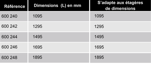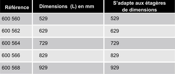 - Peut s'installer à l'avant ou à l’arrière de l’étagère