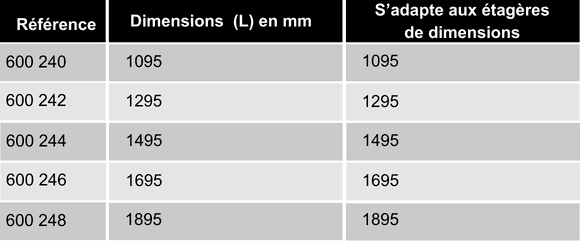 - Des étagères supérieures et inclinées pour stocker les cartons, les boîtes ou les composants en attente.