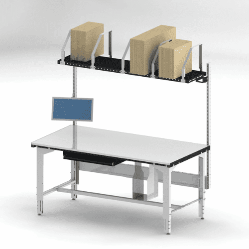 La modularité permet de construire le poste autour du flux de travail. En ajoutant des accessoires spécifiques comme des dérouleurs de papier bulle, des supports pour cartons, des bras pour écrans ou des tablettes inclinées, on crée une "zone d'atteinte idéale". L'opérateur n'a plus à marcher ou à se pencher pour chercher son matériel.